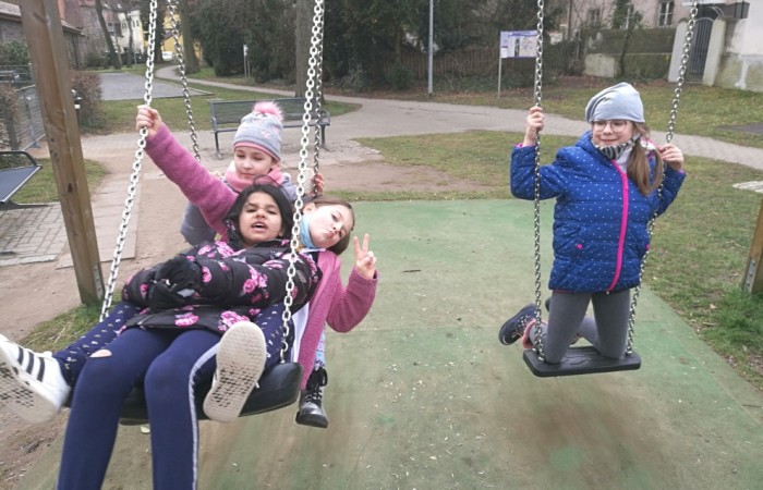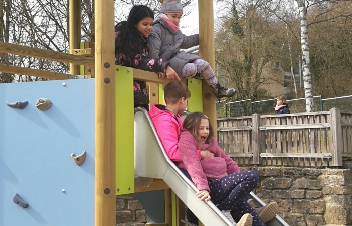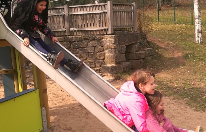 Nun ging es über den Parkplatz an der Wasenmühle und über die Aischinsel zum Skaterplatz. Auch dort wurden wir fündig. Viele Glasscherben, Kronkorken und Tetra-Packs kamen in die Müllbeutel. Wir ließen zwei Müllbeutel dort liegen, da sie uns zu schwer wurden. Über die Aischwiesen ging es weiter. Wir fanden eine volle Windel, Plastiktüten, viele Feuchttücher, die an den Sträuchern hingen und anderen Plastikmüll. Die nächste Pause machten wir am Spielplatz an den Herrenbergen und von dort ging es wieder über den Festplatz zur Schule zurück. Wir sammelten unsere liegengelassenen Tüten ein und schleppten sie in den Müllraum der Schule. Es war ziemlich anstrengend, teilweise frustrierend, weil wir so viel Müll fanden, aber sehr befriedigend, da wir etwas für unsere Umwelt getan haben.