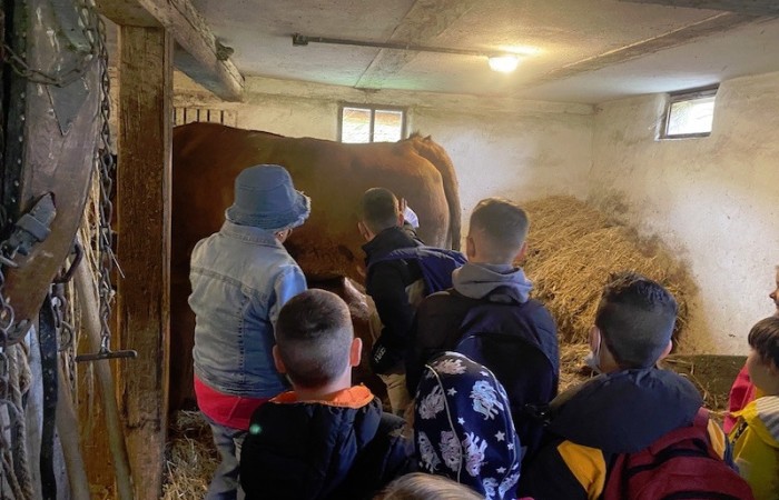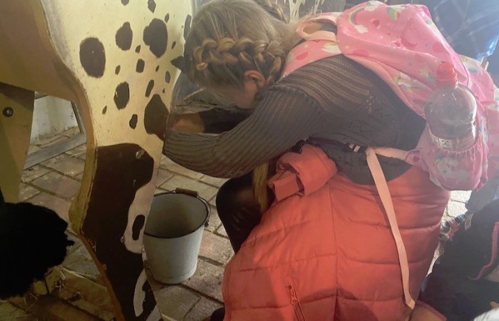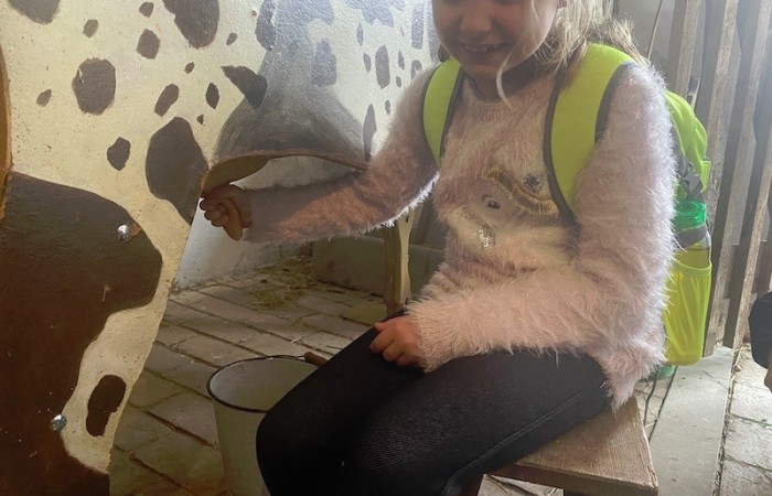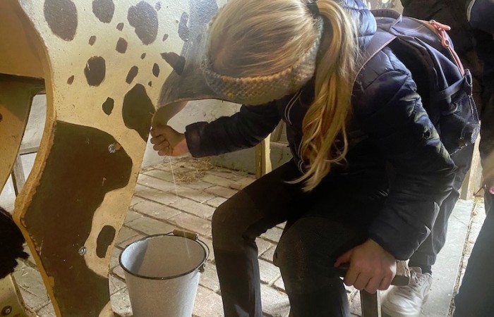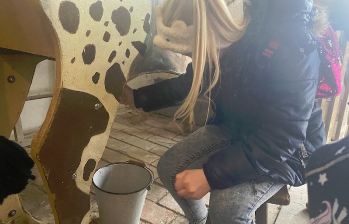 Pünktlich um Viertel nach Acht am Neustädter Bahnhof versammelt, konnten wir unsere Zugreise nach Bad Windsheim antreten. Dort angekommen, durften wir zunächst rund 1,5 km zu Fuß zurücklegen, bevor wir uns durch eine kurze Essenspause stärken konnten. Vor Ort wurden wir von einer Führung an die Hand genommen, welche uns einige interessante Informationen zum Freilandmuseum vermittelte. Vom Ochsen streicheln, über das Melken einer „Euter-Atrappe“, bis hin zum letztlichen Schlagen von Butter war alles dabei. All die Bemühungen wurden letztlich natürlich mit besonders leckeren Butterbroten und Buttermilch entlohnt. Nachdem wir es uns haben schmecken lassen, besichtigten wir noch alte Bauernhäuser und Ställe.
