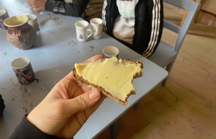 Das Ziel: eigens im ursprünglichen Stil geschlagene Butter auf frisch gebackenen Broten zu verköstigen und dabei einen Blick in die alten Lebensweisen von Bauern aus der Gegend zu erhaschen.