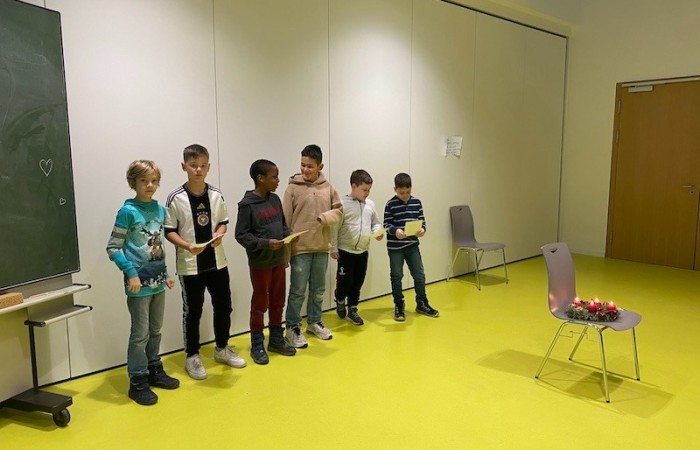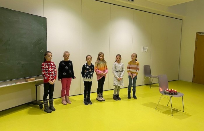 Die Klasse 3a hat jeden Montag die vier Adventstage singend angesagt und kleine Wichtel haben ihr Unwesen getrieben und den glücklichen Kindern Geschenke für die Dezembertage beschert. Manche Kinder waren sogar so fleißig noch ein Gedicht zu erlernen, um es der gesamten Jahrgangsstufe vorzutragen. Das hat auch super geklappt! Nach einem gemeinsamen Ständchen in großer Gruppe, ging’s dann in behaglicher Stimmung daran, den Magen mit köstlichen Leckereien und zahllosen Plätzchen zu füllen. Und ich bin mir sicher viele dachten sich: „So könnte Schule jeden Tag sein!“