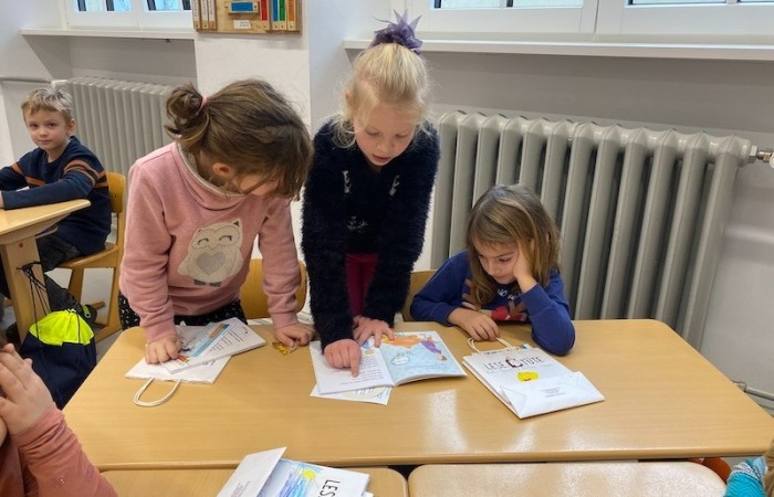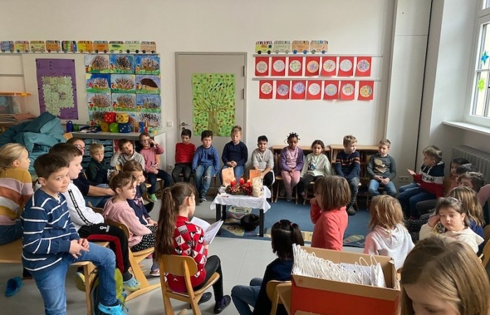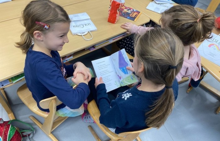 Bis dahin, hat aber die 3a gerne die Aufgabe übernommen, den Neulingen aus dem Buch vorzulesen und mit ihnen gemeinsam auf Kratzbildern weihnachtliche Motive zu zeichnen.