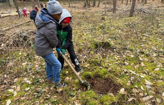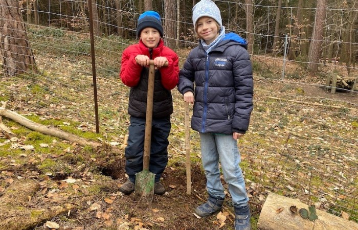 So kann sich der Schulwald auch dieses Jahr über ein paar junge Bäume mehr freuen. Robinien, Schwarzkiefern und Wildbirnen haben die Kinder erfolgreich eingepflanzt, gegossen und letztlich mit einem Pfahl versehen, auf welchem die jeweiligen Namen der Baumpaten sowie die Jahreszahl zu lesen sind. Gerne können die Kinder mitsamt ihren Familien dem Schulwald einen Besuch abstatten und die jungen Bäume bestaunen.
