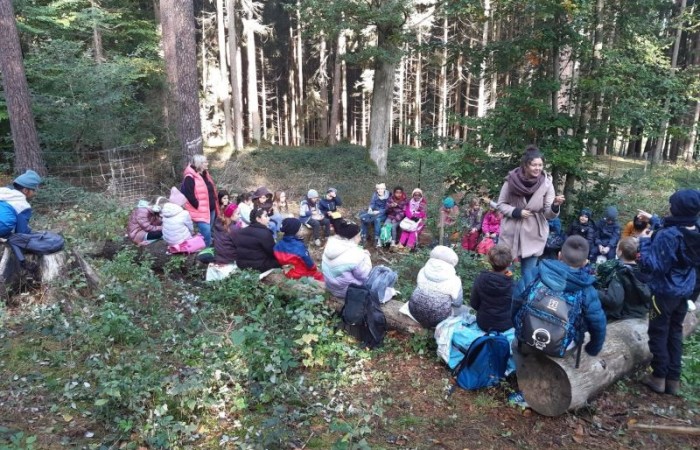 Doch nicht nur das Spielen und Bauen standen auf dem Programm! Im Rahmen des Wandertags lernten die Kinder auch viel über die Versorgung der Bäume. Sie spielten den Prozess nach, wie ein Baum über seine Wurzeln Wasser und Nährsalze aufnimmt und diese bis zu den letzten Blättern transportiert.