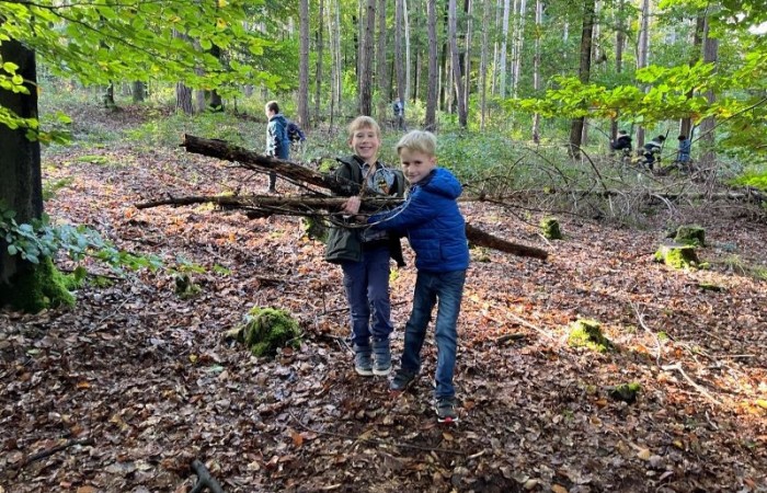 Ein Höhepunkt des Tages war das Bauen von Häuschen aus Ästen. Die Kinder waren kreativ und gestalteten ihre kleinen Bauwerke mit viel Fantasie. Es war beeindruckend zu sehen, wie sie zusammenarbeiteten und ihre Ideen umsetzten.