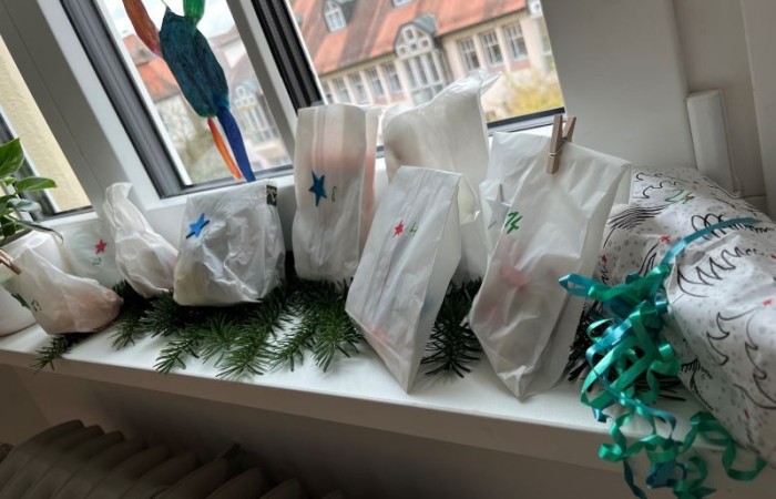 Neben der Weihnachtsfeier gab es in der Adventszeit noch weitere tolle Momente, die uns in festliche Stimmung versetzt haben. Darunter zählt beispielsweise das Adventslesestübchen (s. Artikel), die Adventsfeier mit der Klasse 3b (s. Artikel), das von uns besuchte Weihnachtskino, ein Adventskranz, an dem wir jede Woche eine neue Kerze anzünden konnten, Lichterketten im Klassenzimmer, das gemeinsame Lesen des Adventskalenderbuchs „Du spinnst wohl!“ und nicht zuletzt der wundervolle, selbstgestaltete Adventskalender von der Klasse für die Klasse! An dieser Stelle möchte ich sowohl den Elternsprecherinnen explizit als auch allen Eltern noch einmal ausdrücklich für die Mühen danken. Nicht nur den Kindern hat es täglich eine große Freude bereitet, auch ich konnte mich jeden Morgen über kleine Überraschungen freuen! Herzlichen Dank dafür!