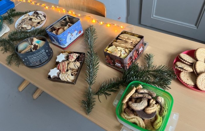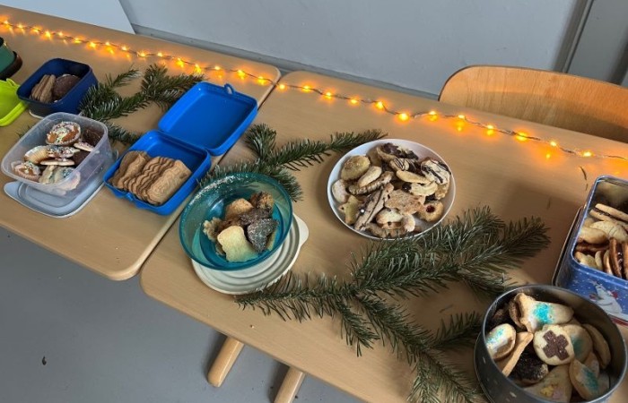 Gemeinsam eröffneten wir das Buffet mit dem Singen eines Weihnachtsliedes. Es gab viele selbstgebackene Plätzchen, Lebkuchen und andere kleine Leckereien. Die Kinder hatten große Freude daran, sich auszutauschen und alles zu probieren.