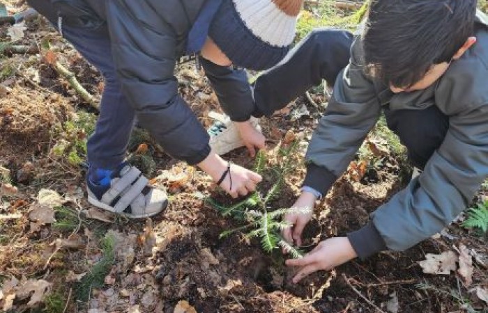 Das Pflanzen der Bäume bot den Kindern praktische Einblicke in die Aufforstung und die Bedeutung des Waldes.