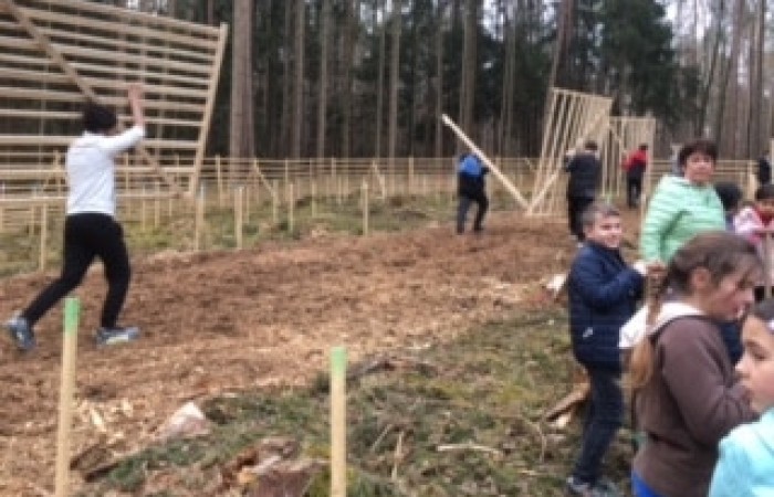 Zum Schluss durften wir noch eine ganze Weile auf unserem Schulwaldgelände spielen. Mazen und wir beide bauten ein Tippi aus Ästen und Laub. Es ist sehr schön geworden.