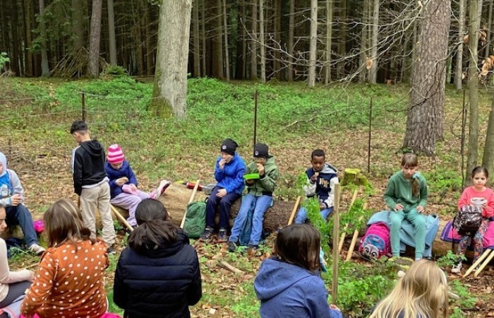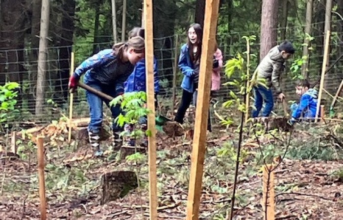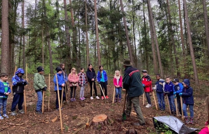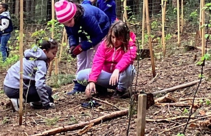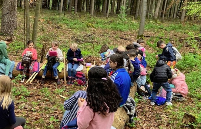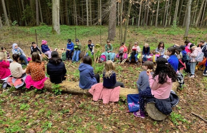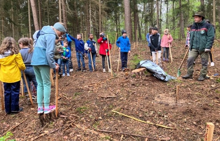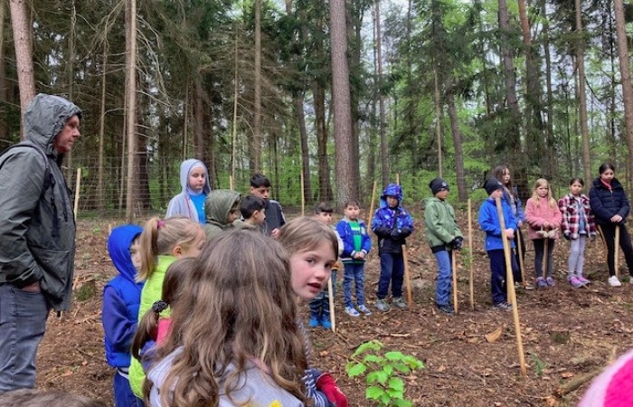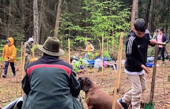 Mit den Kindern aus der Deutschklasse pflanzten wir auch in diesem Jahr wieder Bäume für unseren Schulwald.