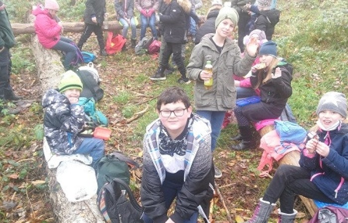 Nachdem der Ausflug in den Wald wegen eines Sturms verschoben werden musste, war die Freude umso größer als es am 11.11.21 für die Klasse 3c einen Abenteuertag im Freien gab.