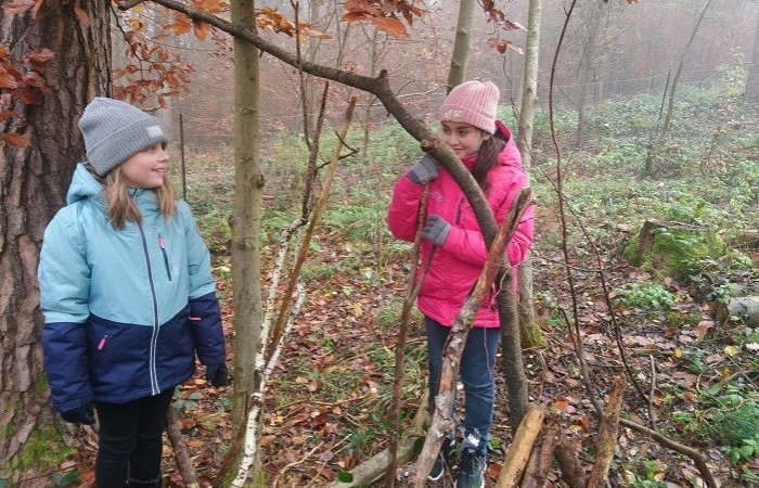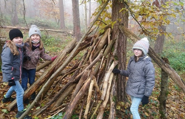 Nach über einer Stunde gab es für die Klasse eine Pause. Nach dem Essen durften wir verschiedene Tierutensilien, wie zum Beispiel ein Fuchsfell, bestaunen. Das war für alle sehr aufregend. Im Anschluss war noch genug Zeit, um sich frei im Wald zu beschäftigen. Dabei entstanden kleine Hütten oder Tippis aus zusammengetragenen Stöcken oder eine Schmiede. Als wir uns am Startpunkt vom Förster verabschiedeten, durften wir noch auf dem Spielplatz spielen, bevor es zurück zur Schule ging.