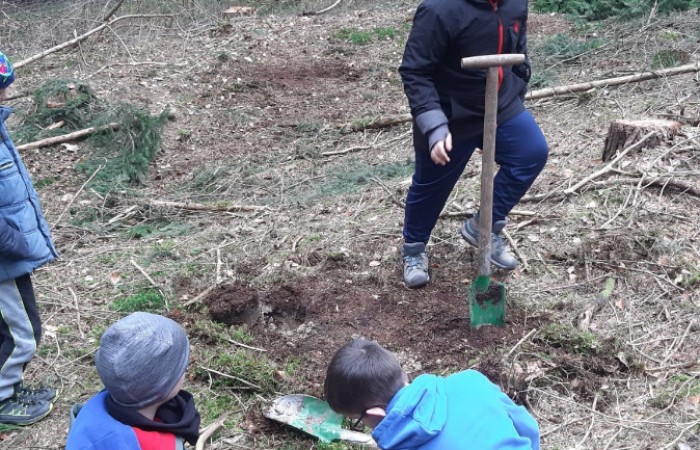 Diese Exkursion war nicht nur ein Beitrag zum Umweltschutz, sondern auch eine wertvolle Erfahrung für die Kinder. Sie erwarben Kenntnisse über die Bäume sowie über Teamwork und Verantwortung für unsere Umwelt. Voller Einsatz unterstützten sich die Partnerteams, immer bestehend aus einem Drittklässler und einem Erstklässler, gegenseitig beim Einpflanzen der Bäumchen.