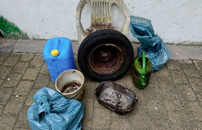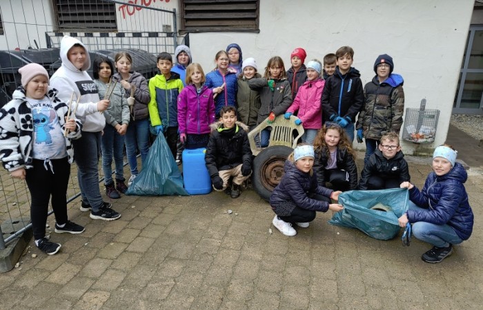Wie auch in den Jahren davor ärgerten wir uns maßlos über die vielen weggeworfenen Zigarettenkippen. Auf dem Festplatz und um ihn herum fanden wir viele interessante Sachen: ein Brillengestell, E-Zigaretten, einen Plastikstuhl, Autoräder, einen Kochtopf, einen Kanister eine Gießkanne, einen Eimer und vielen kleinen Unrat. Aus der Bleich fischten wir auch wieder verschiedenen Müll. Unserer Müllsäcke waren zum Schluss so schwer, dass wir sie kaum schleppen konnten.
