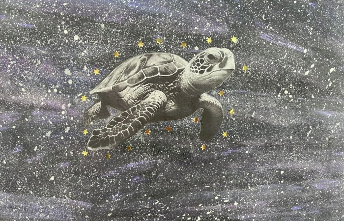 Nachdem die Schüler das Buch von Armin Pongs gelesen hatten, gestalteten sie im Kunstunterricht die passenden Bilder.