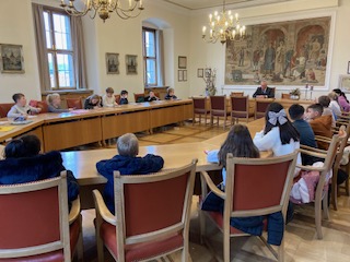Zum Abschluss der Sequenz durfte die Klasse 4a die Thematik beim Besuch im Neustädter Rathaus ebenfalls „hautnah“ miterleben. Während die Kids auf den Stühlen der Stadträte im großen Sitzungssaal Platz nehmen durften, stand der 1. Bürgermeister, Herr Meier, ihnen Rede und Antwort. Als besonderes Highlight ließ Herr Meier auch noch einen Blick hinter die Kulissen in sein Büro zu!