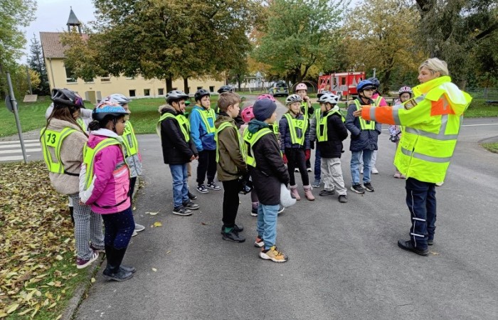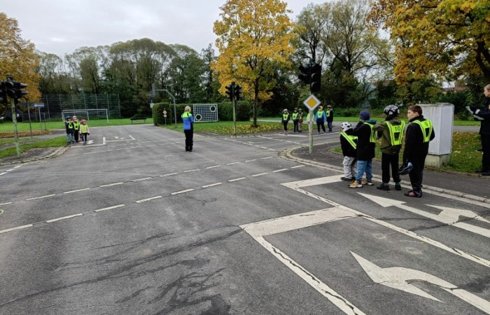 Auf dem Verkehrsübungsplatz in Diebach übten wir, bei meist gutem Wetter, konzentriert und fleißig mit den beiden Polizistinnen. Sie standen uns immer mit Rat und Tat zur Seite. Sich alles zu merken war gar nicht so einfach.