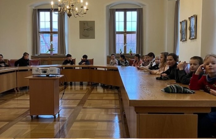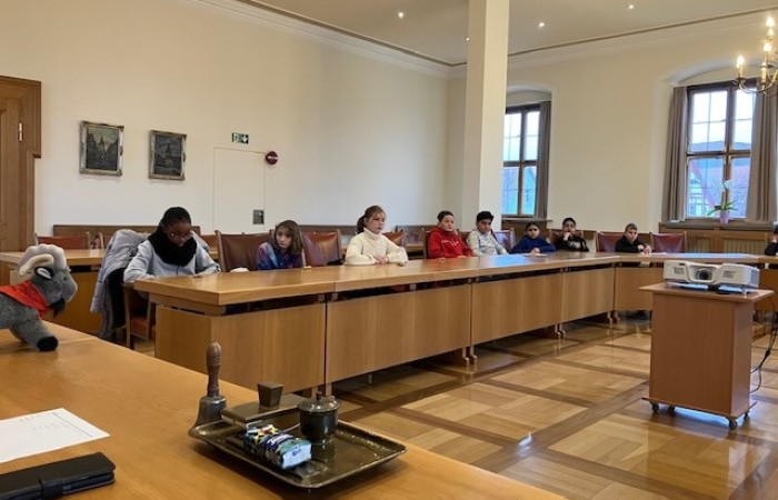 Wir nahmen im großen Sitzungssaal des Rathauses Platz und fühlten uns gleich so wichtig wie Stadträte/innen.