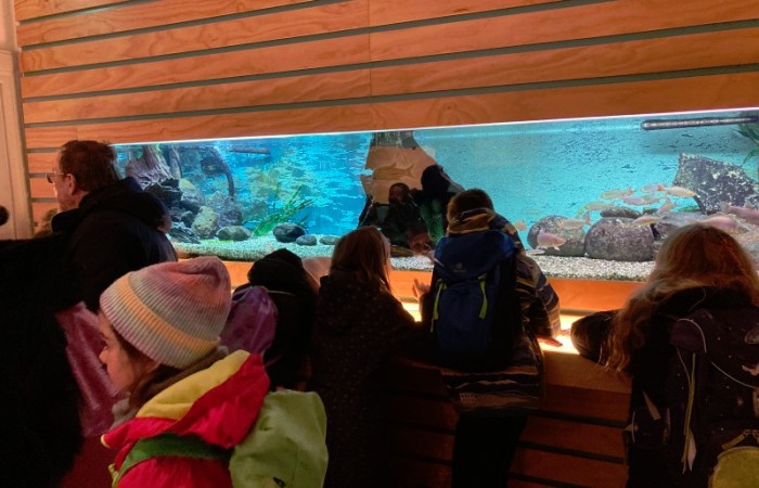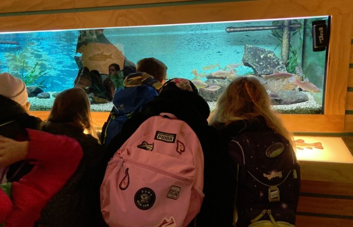 Nach einem kurzen Film zum Einstieg bekamen wir eine Führung durch das Museum. Dort gab es viele verschiedene Möglichkeiten, sich Wissen über den Karpfen anzueignen: Texte, Videos, Apps, Modelle, Schaubilder…. Besonders begeistert haben uns auch die Aquarien. Zum Schluss durften alle Kinder selbst das Museum erkunden und dabei Quizfragen beantworten. Wir haben viel gelernt und hatten eine schöne Zeit im Karpfenmuseum!