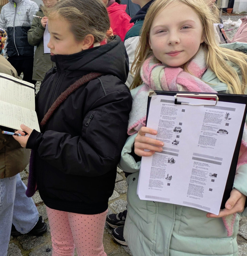 - Neugier und mutige Fragen: Die Kinder stellten neugierig Fragen wie „Wie lebten die Menschen hier im Mittelalter?“ oder „Welche Wege führten damals durch unsere Stadt?“