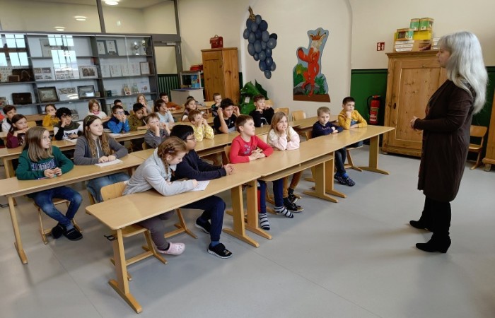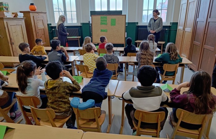 Alle Klassensprecher trafen sich im "Klassenzimmer im Lichthof" und warteten gespannt auf Frau Gleiß. Nach der Begrüßung durch Frau Röder und einer Vorstellungsrunde der Klassensprecher untereinander, stellte sich Frau Gleiß als neue Schulsozialpädagogin vor. Sie ist immer Montag, Dienstag und Freitag an der Schule und hat ihr Büro im Untergeschoss im Zimmer U 09. Sie ist Ansprechpartnerin für Schüler, Lehrer und Eltern bei Problemen und Streit im Schulalltag, kommt in die Klassen und gestaltet Projekttage. Kindersprechstunden in ihrem Büro gibt es in der ersten Pause an den Tagen, an denen sie in der Schule ist. In der zweiten Pause ist sie oft im Pausenhof zu finden.