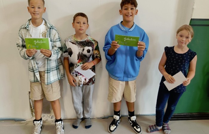 Am letzten Schultag wurden unsere Schulhaussieger des diesjährigen Malwettbewerbs gekürt und die von der Stadt gezogenen Losgewinne an die glücklichen Gewinner verteilt.