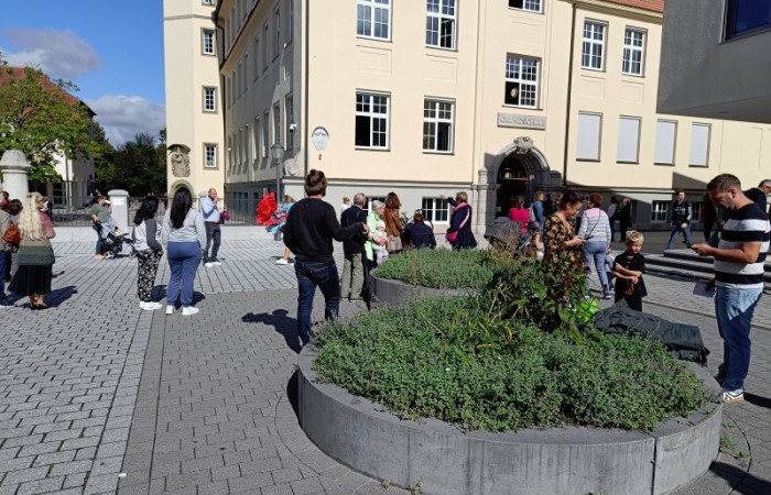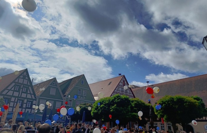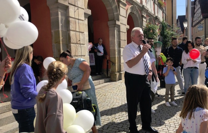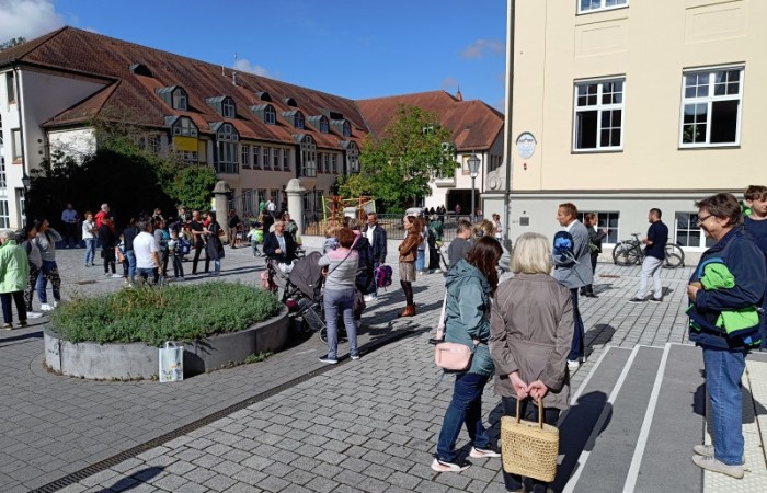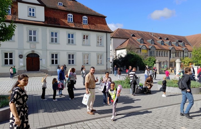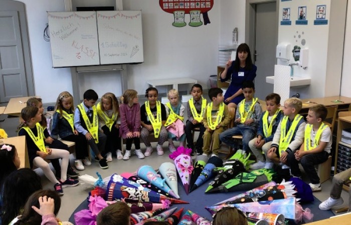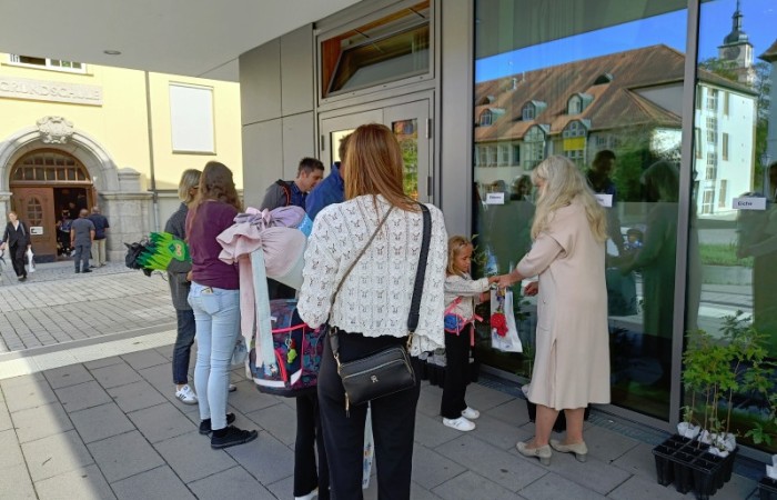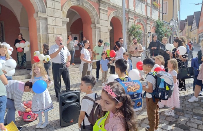 Im Anschluss an eine gemeinsame Pause im Pausenhof begann für die Erstklässler die erste Unterrichtsstunde in ihrem Klassenzimmer. Zum Ende des Unterrichts durften die Schüler ihr eigenes Bäumchen aussuchen, das sie als bleibende Erinnerung an ihren ersten Schultag einpflanzen konnten. Den krönenden Abschluss bildete der Luftballon-Start der Werbegemeinschaft NEA-Aktiv e.V. auf dem Marktplatz, der auf freiwilliger Basis stattfand.
