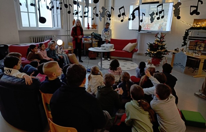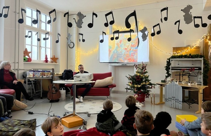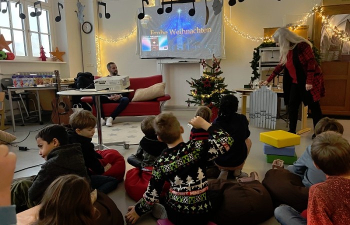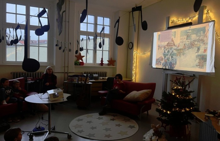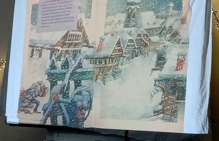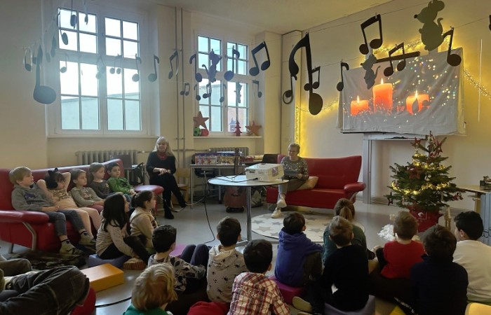 Frau Röder betreute alle 14 Klassen liebevoll und fachkundig zusammen mit der jeweiligen Klassenlehrkraft. Die Kinder genossen die weihnachtliche Stimmung und Ruhe sehr. Manch ein Schüler/Schülerin sagte: Ohhhh, das war jetzt schön, so entspannend. … Fast wie Kino. …. Können wir noch bleiben. … Auch wurde darüber geredet, dass dieses Buch einen wahren Kern besitzt.