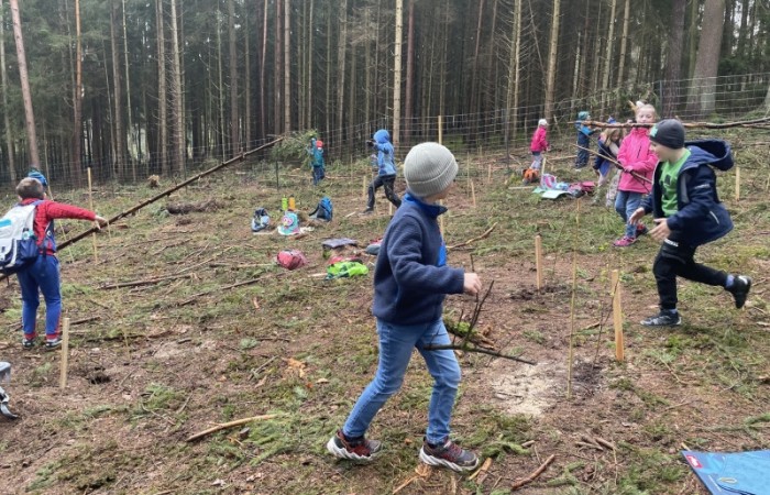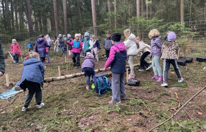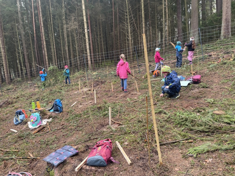 Die Klasse 1d pflanzt Bäume im Neustädter Schulwald
