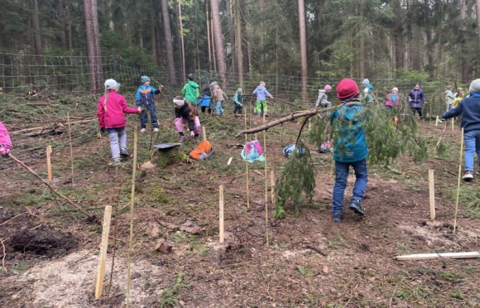 Die Klasse pflanzt Bäume im Neustädter Schulwald