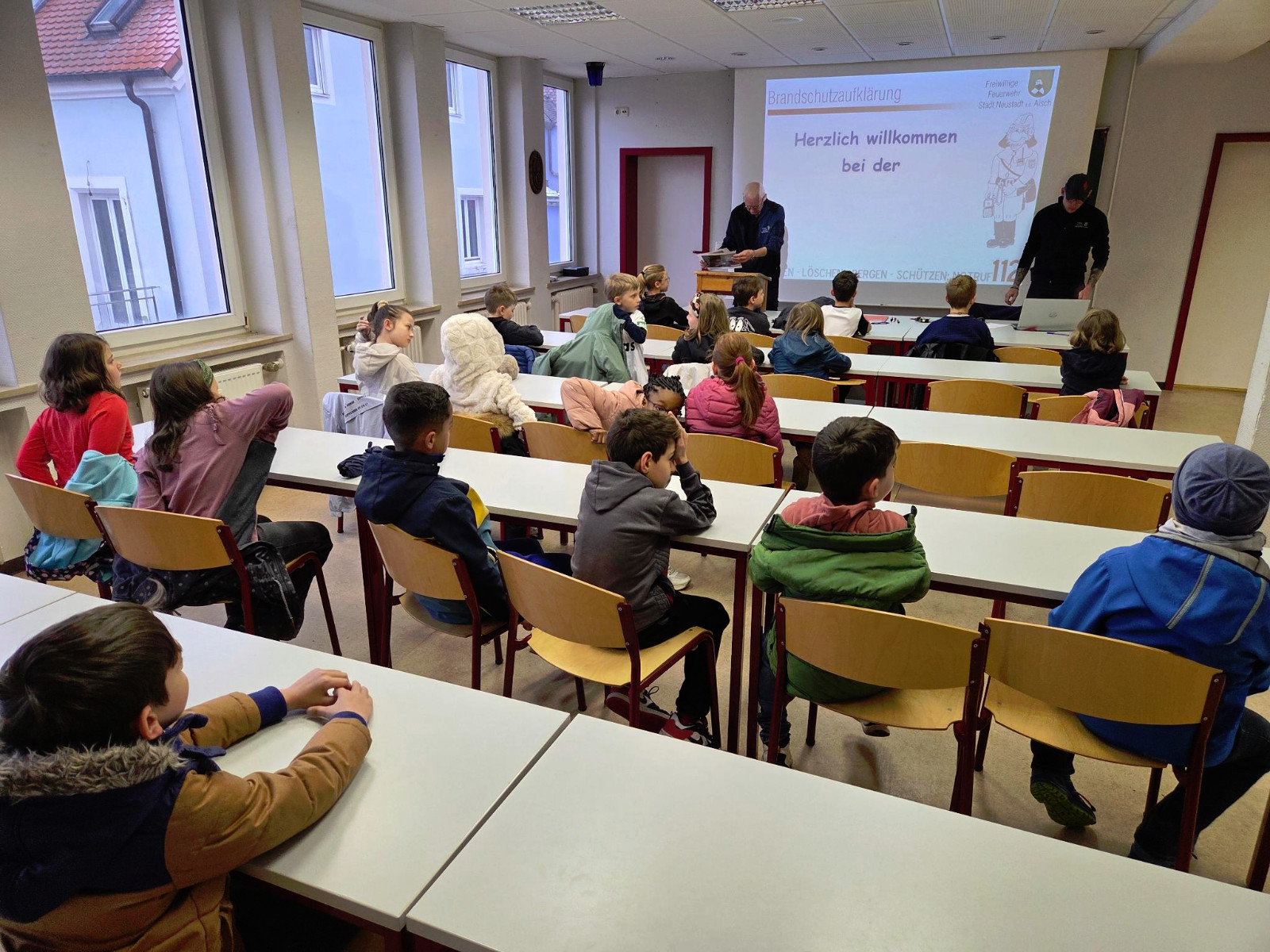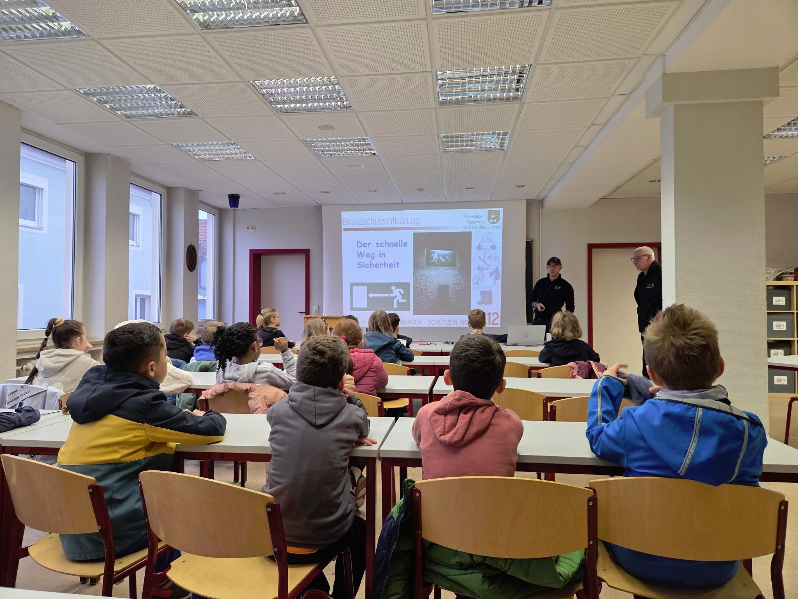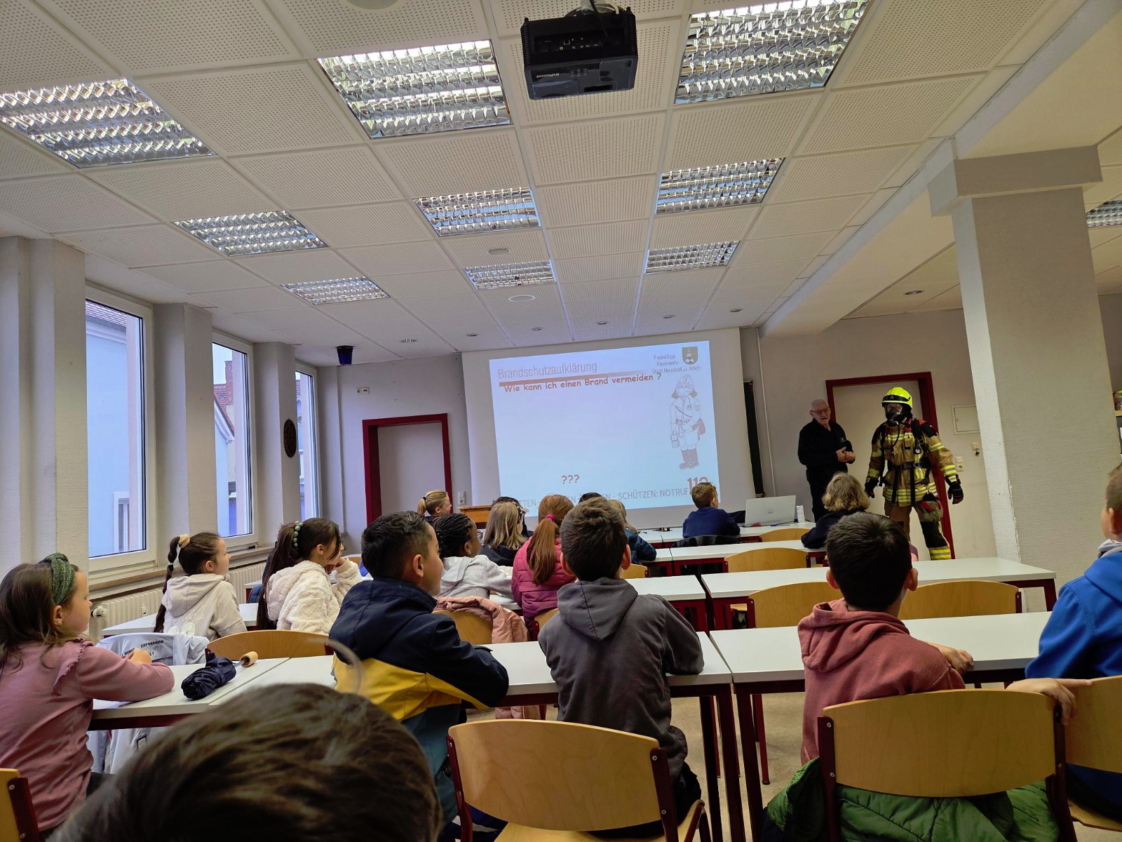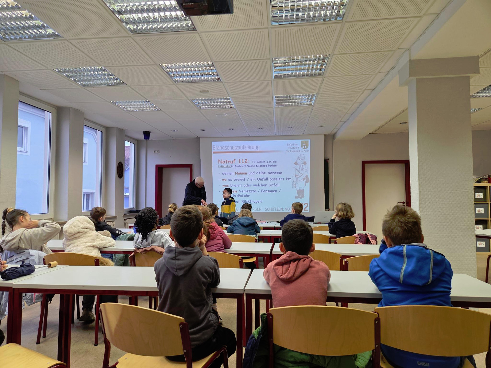 Gleich zu Beginn erfuhren die Schülerinnen und Schüler mehr über die wichtigste Aufgabe der Feuerwehr: das Schützen von Menschen, Tieren und Sachwerten. Besonders interessant war die Schulung zum richtigen Verhalten im Brandfall sowie zum Absetzen eines Notrufs. Die Kinder lernten dabei, wie wichtig es ist, ruhig zu bleiben und die richtigen Informationen weiterzugeben.