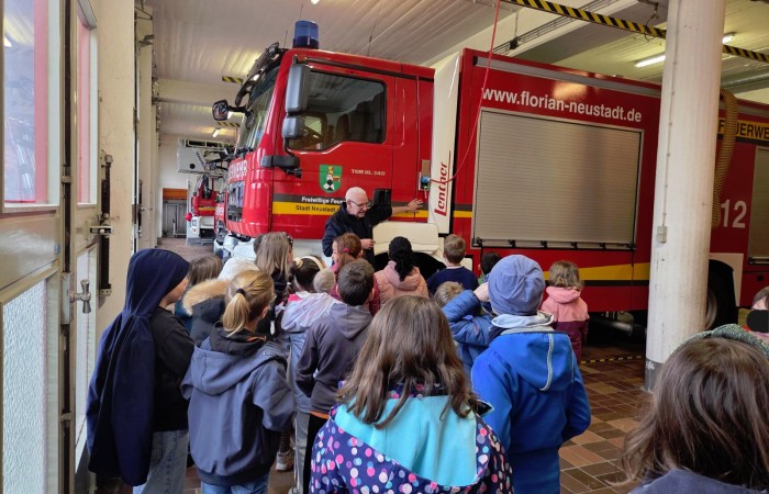 Im Rahmen der HSU-Sequenz „Feuer“ machten sich die dritten Klassen an zwei Tagen zu Fuß auf den Weg zur Freiwilligen Feuerwehr in NEA.