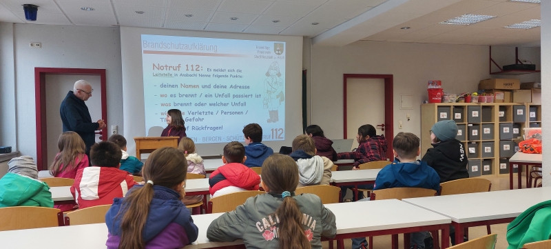 Gleich zu Beginn erfuhren die Schülerinnen und Schüler mehr über die wichtigste Aufgabe der Feuerwehr: das Schützen von Menschen, Tieren und Sachwerten. Besonders interessant war die Schulung zum richtigen Verhalten im Brandfall sowie zum Absetzen eines Notrufs. Die Kinder lernten dabei, wie wichtig es ist, ruhig zu bleiben und die richtigen Informationen weiterzugeben.