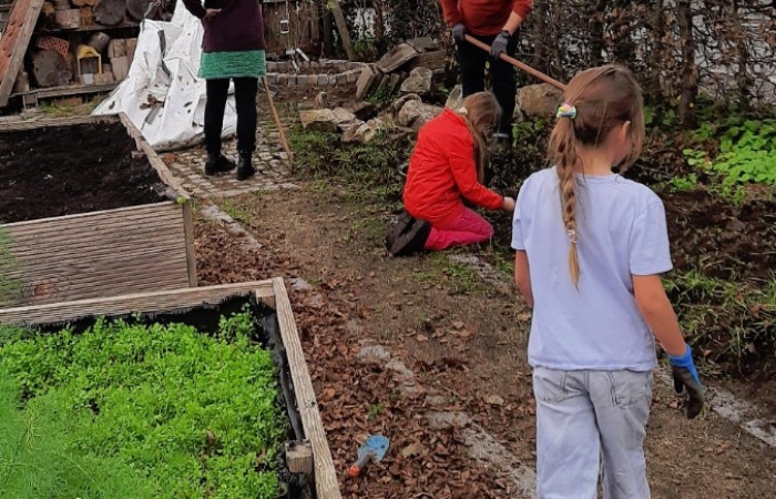 - Eltern unterstützten uns beim Entfernen von Unkraut, beim Gestalten eines Steingartens und beim Stecken von Blumenzwiebeln.