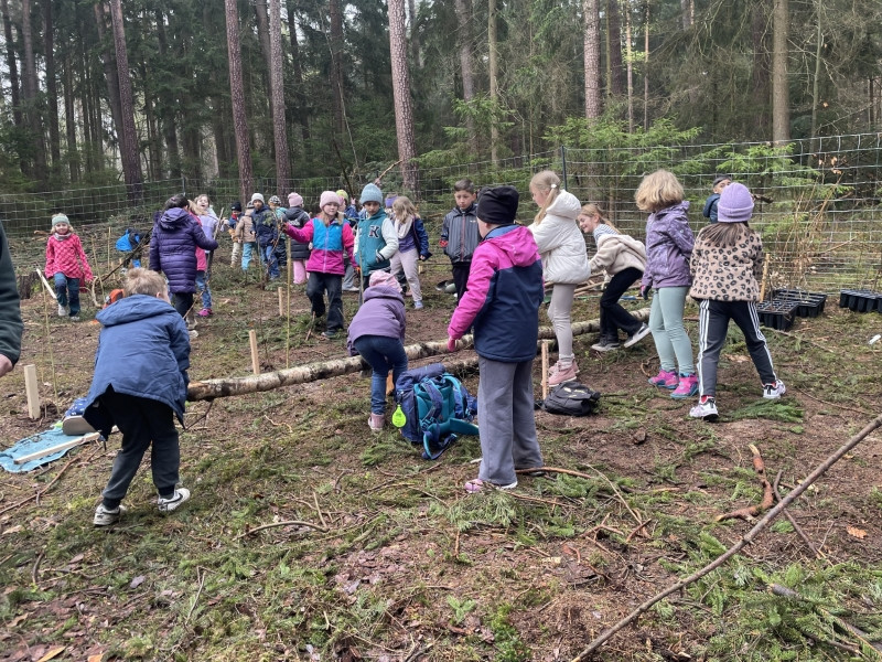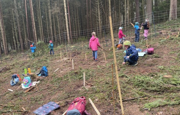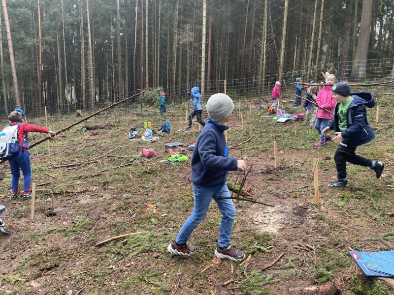 Die Klasse 1d pflanzt Bäume im Neustädter Schulwald