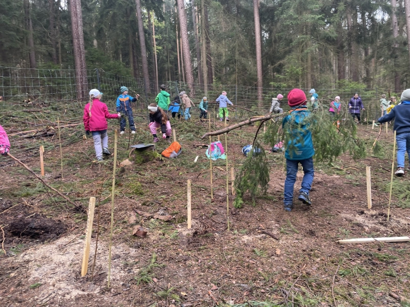 Die Klasse pflanzt Bäume im Neustädter Schulwald