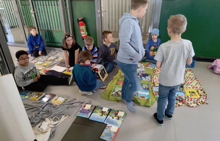 Für zwei Schulstunden verwandelte sich das Schulhaus in eine große Verkaufsfläche. Jeder Schüler konnte eigene Bücher verkaufen und natürlich mit dem erwirtschafteten Geld wieder andere Bücher kaufen.