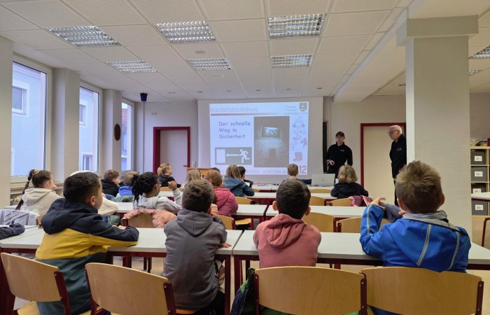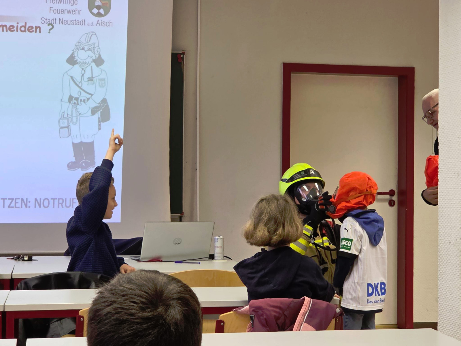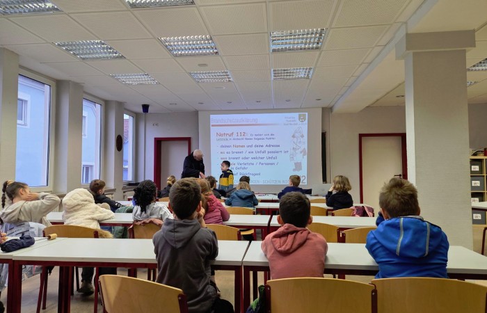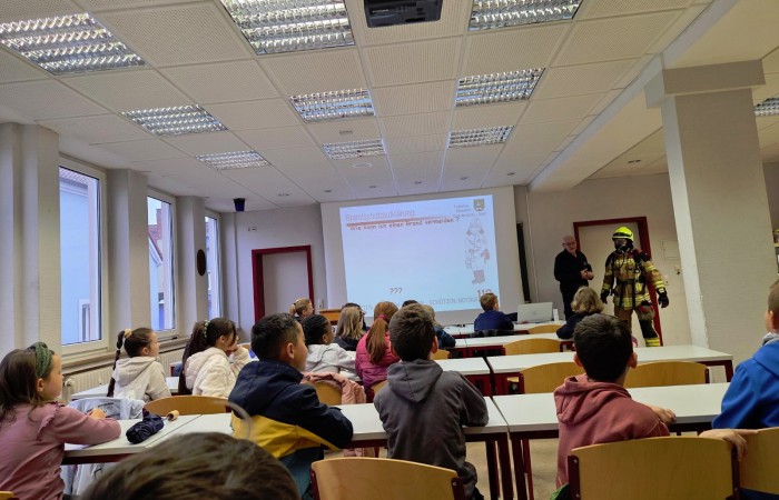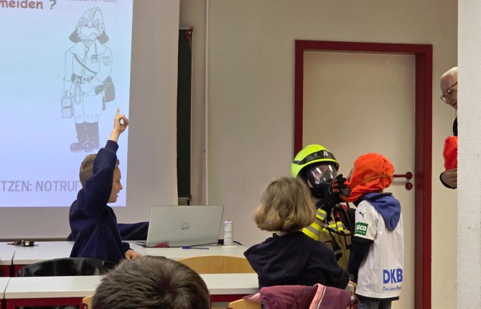 Gleich zu Beginn erfuhren die Schülerinnen und Schüler mehr über die wichtigste Aufgabe der Feuerwehr: das Schützen von Menschen, Tieren und Sachwerten. Besonders interessant war die Schulung zum richtigen Verhalten im Brandfall sowie zum Absetzen eines Notrufs. Die Kinder lernten dabei, wie wichtig es ist, ruhig zu bleiben und die richtigen Informationen weiterzugeben.