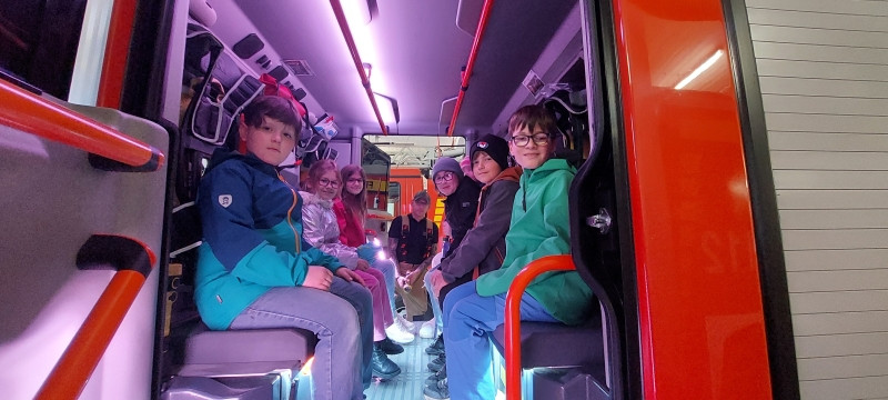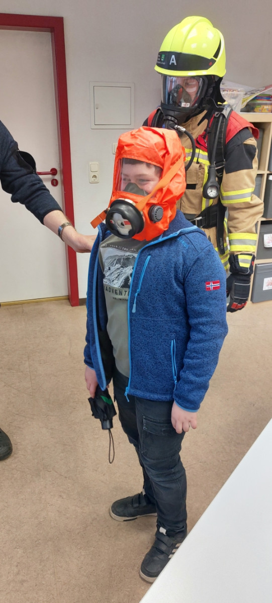 Darüber hinaus stellte die Feuerwehr ihre vielfältigen Aufgaben vor und zeigte den Kindern die Atemschutzausrüstung sowie verschiedene Löschfahrzeuge. Ein besonderes Highlight war, dass die Schülerinnen und Schüler sogar in eines der Feuerwehrfahrzeuge einsteigen durften.