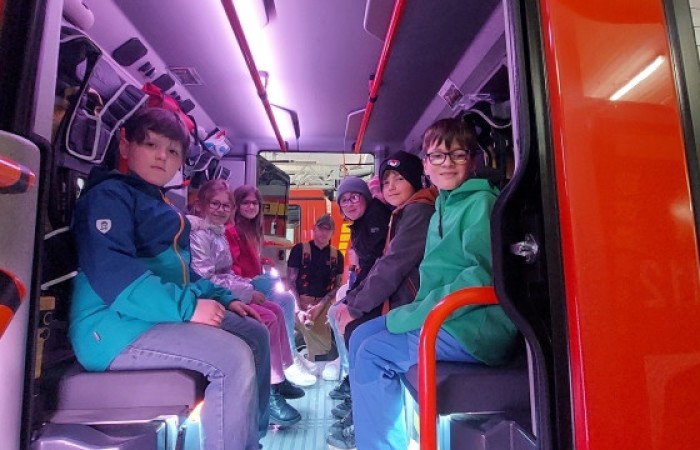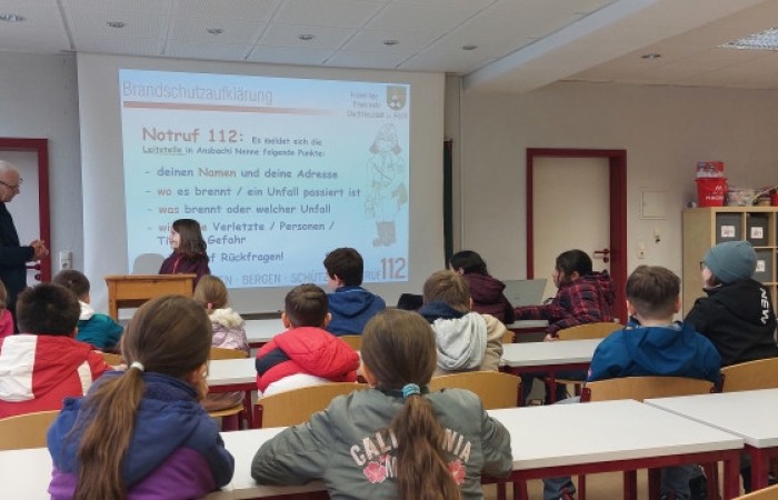 Gleich zu Beginn erfuhren die Schülerinnen und Schüler mehr über die wichtigste Aufgabe der Feuerwehr: das Schützen von Menschen, Tieren und Sachwerten. Besonders interessant war die Schulung zum richtigen Verhalten im Brandfall sowie zum Absetzen eines Notrufs. Die Kinder lernten dabei, wie wichtig es ist, ruhig zu bleiben und die richtigen Informationen weiterzugeben.