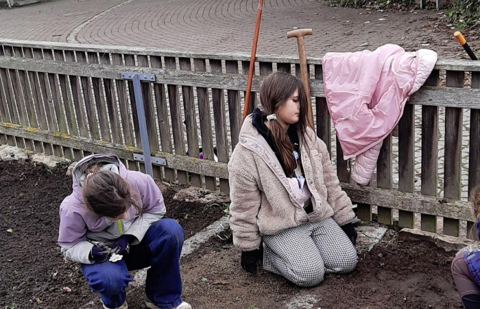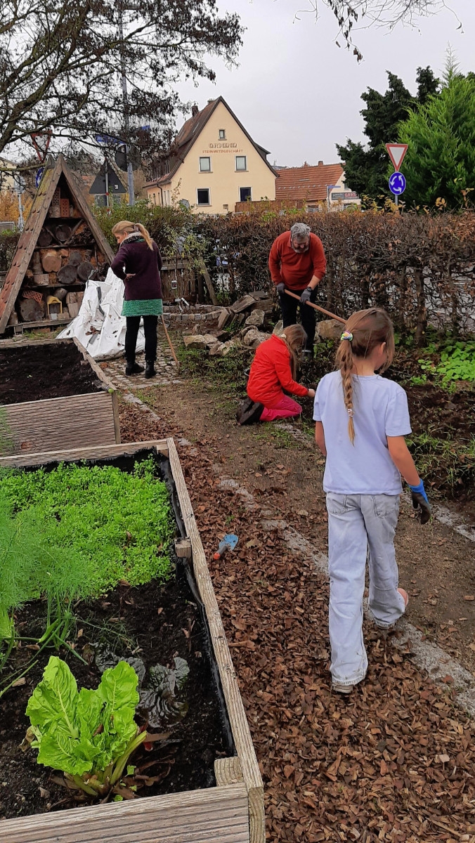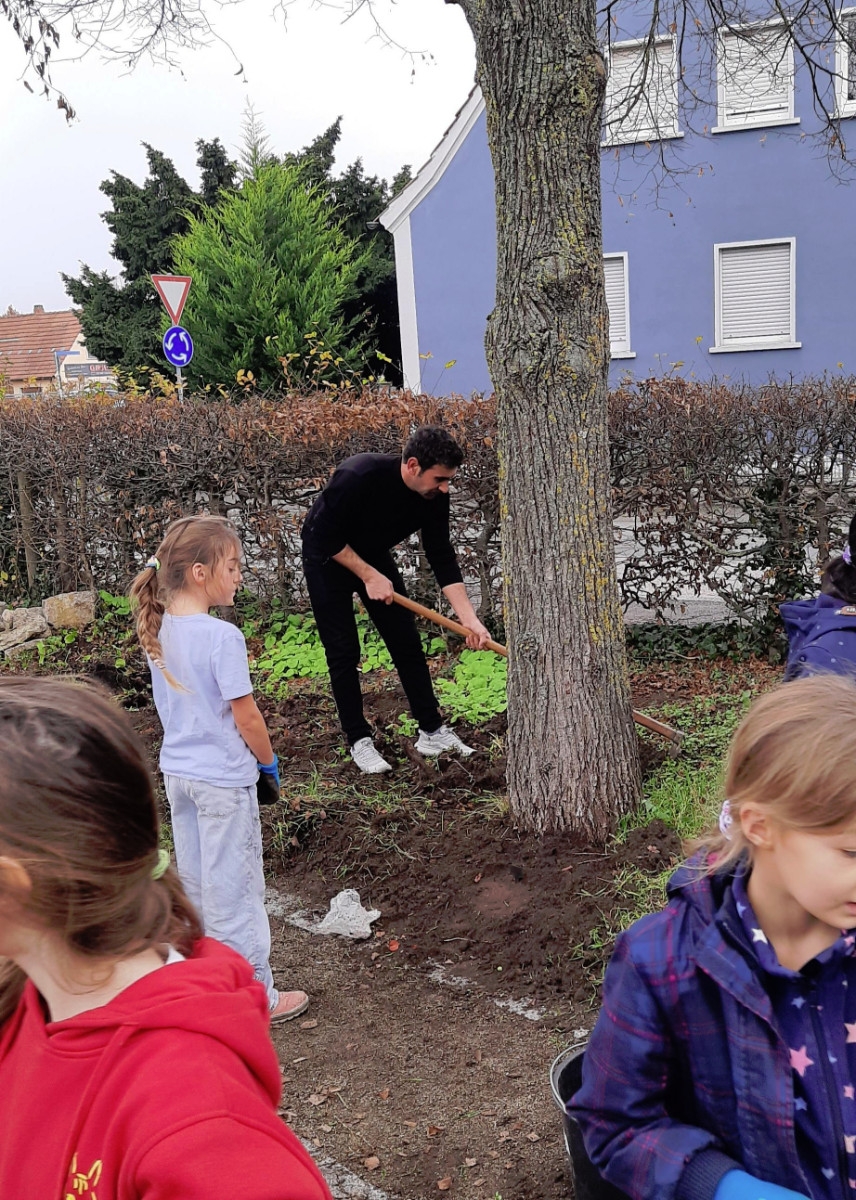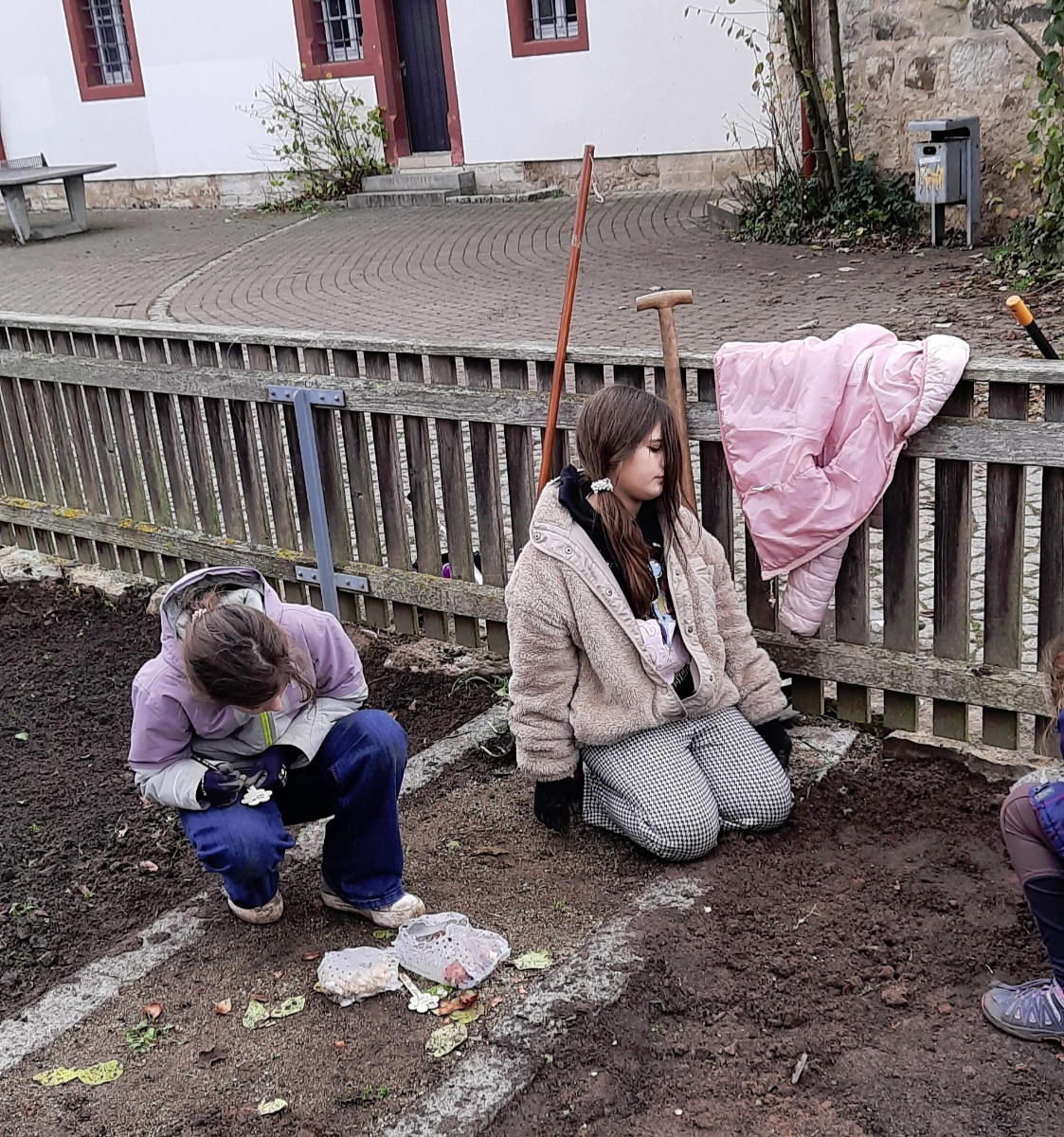 - Eltern unterstützten uns beim Entfernen von Unkraut, beim Gestalten eines Steingartens und beim Stecken von Blumenzwiebeln.